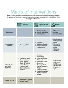 This guide offers some creative and unconventional ways that employers, workers, and values-aligned fund managers might leverage retirement savings to benefit communities. The toolkit explores how we might reenvision retirement along a spectrum of interventions and community care: from harm reduction to divesting from traditional financial structures altogether.  We invite you to reenvision retirement investing as rooted in a model based on solidarity and community care by considering these interventions at the tactical, organizational, and worker levels:
